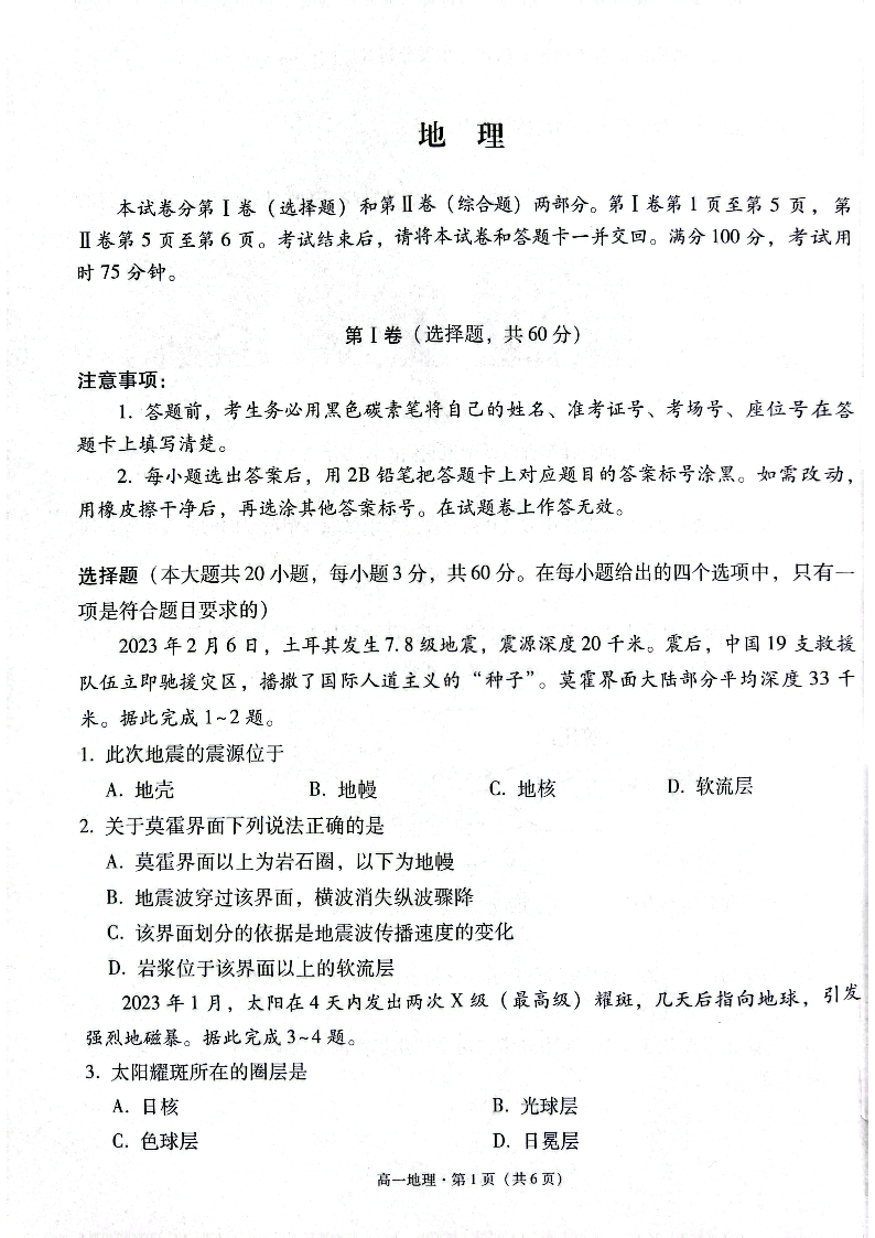 贵州省贵阳市2024-2025学年高一上学期12月联考试题地理