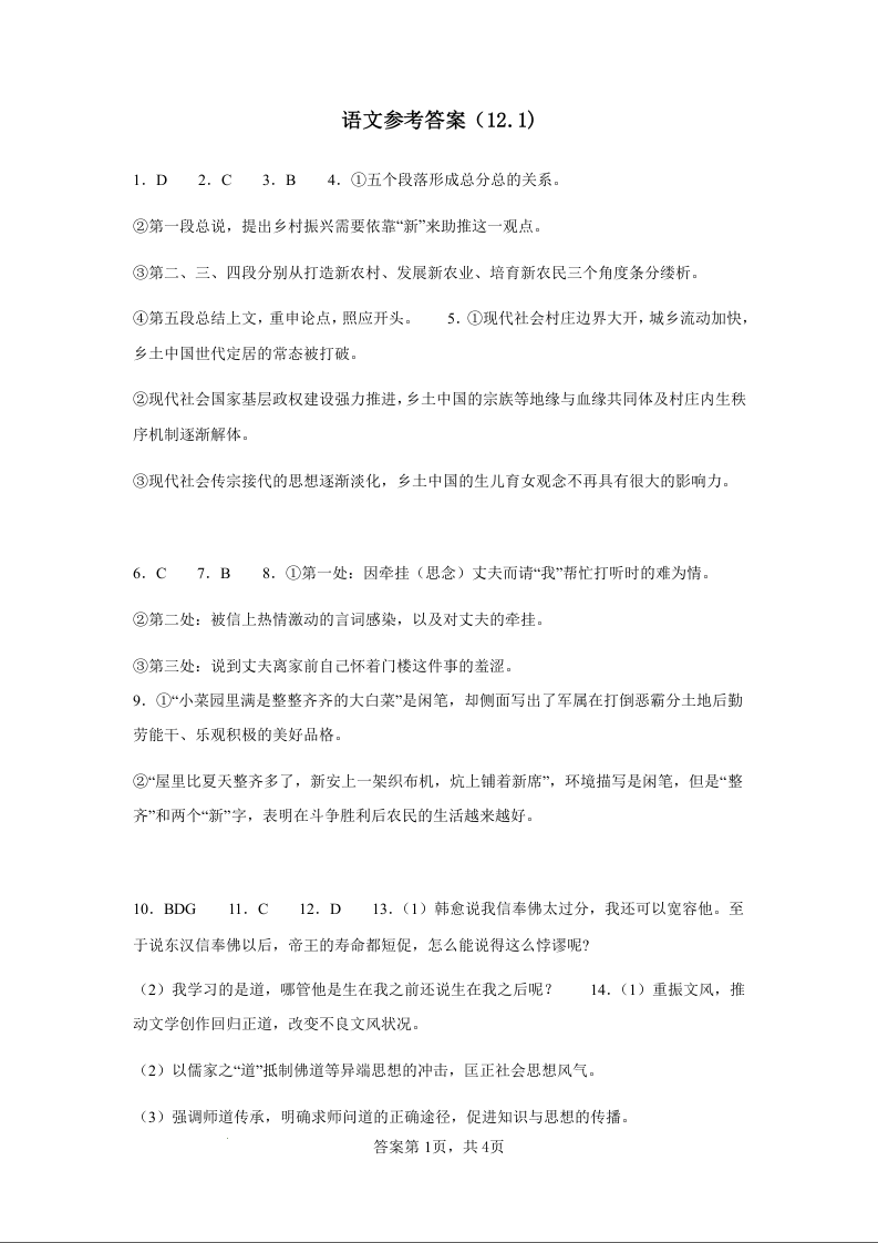 江苏省连云港市灌南高中协作体2024-2025学年高一上学期12月联考语文答案