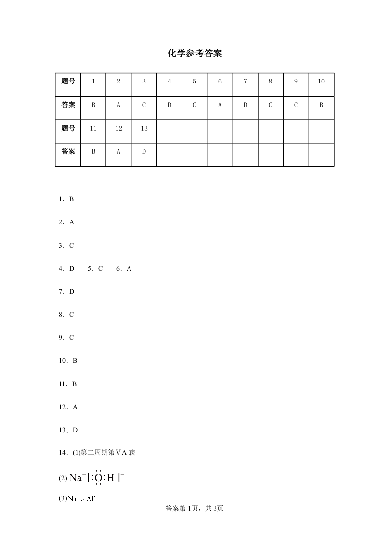 江苏省连云港市灌南高中协作体2024-2025学年高一上学期12月联考化学答案