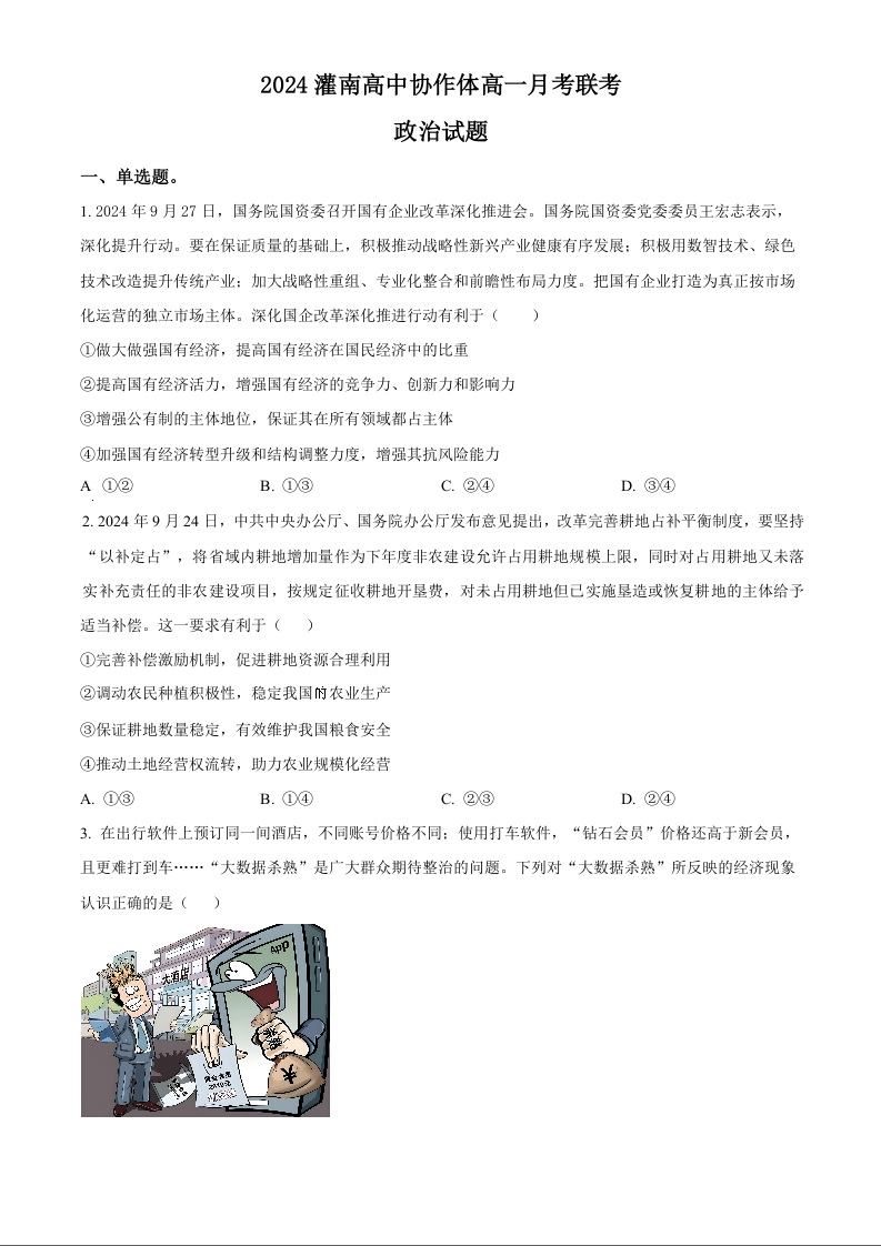 江苏省连云港市灌南高中协作体2024-2025学年高一上学期12月联考政治(原卷版)