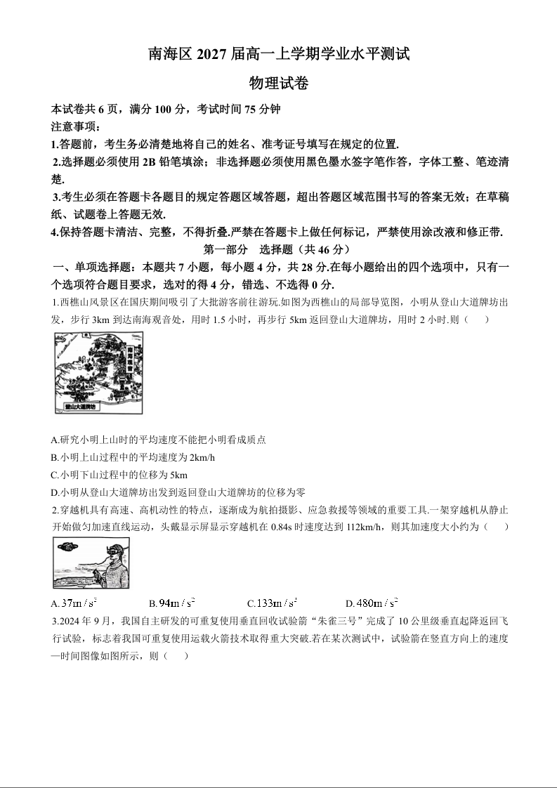 广东省佛山市南海区2024-2025学年高一上学期12月月考物理