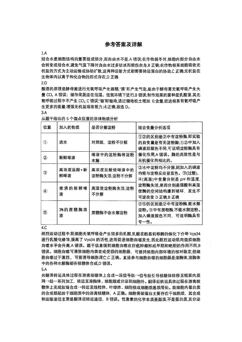 湖北省腾云联盟2025届高三上学期12月联考生物答案