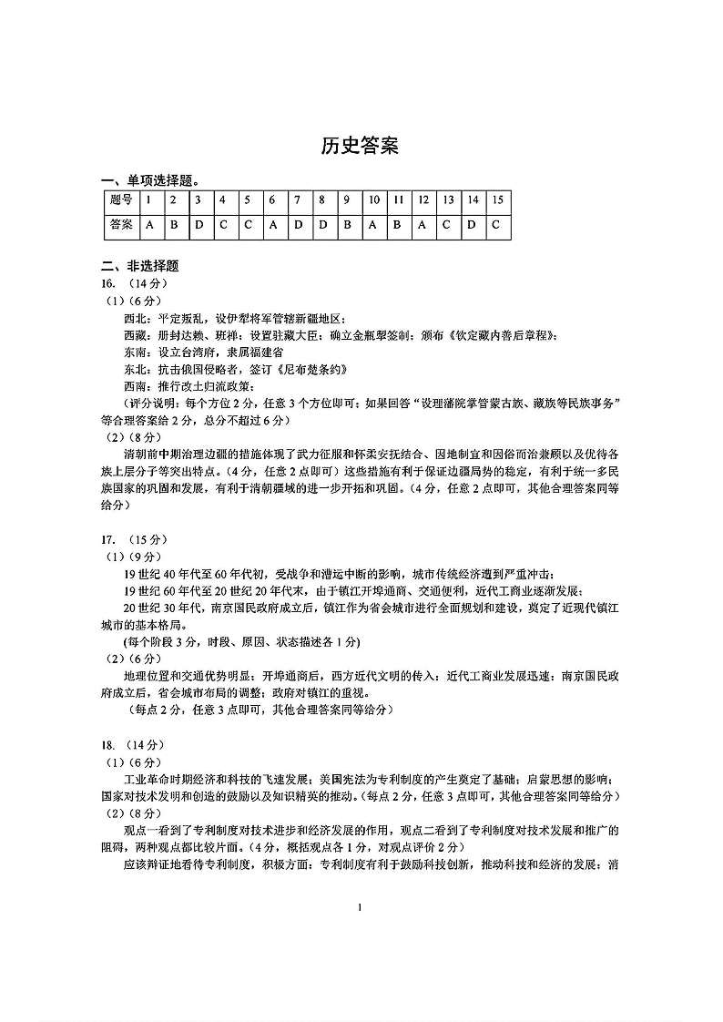 湖北省腾云联盟2025届高三上学期12月联考历史答案