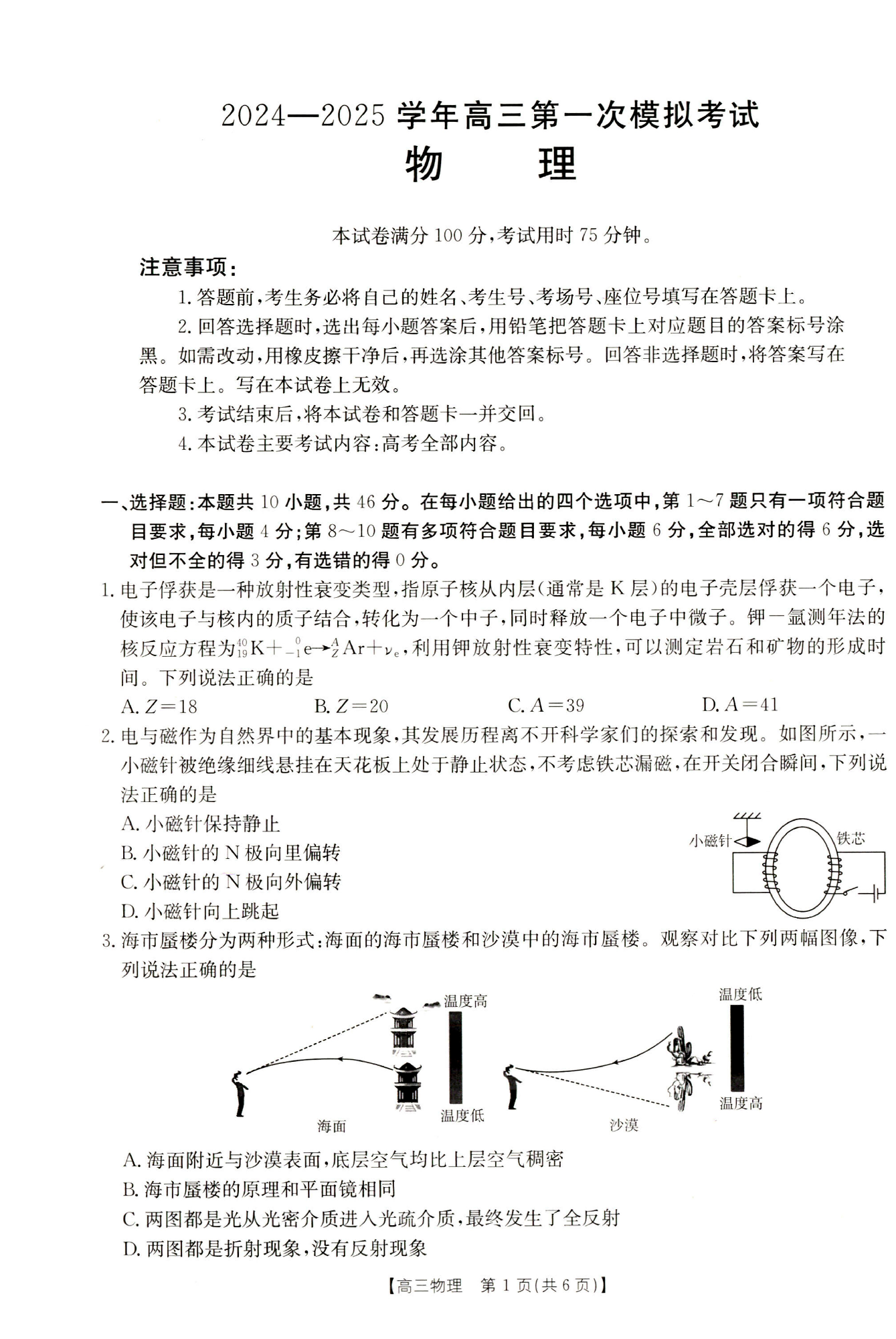 河南省新乡市2025届高三上学期第一次模拟考试物理