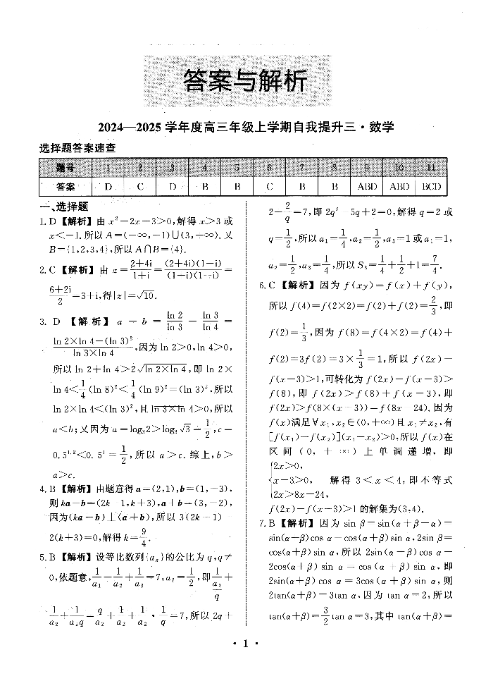河北省衡水市冀州中学2025届高三上学期12月月考数学答案