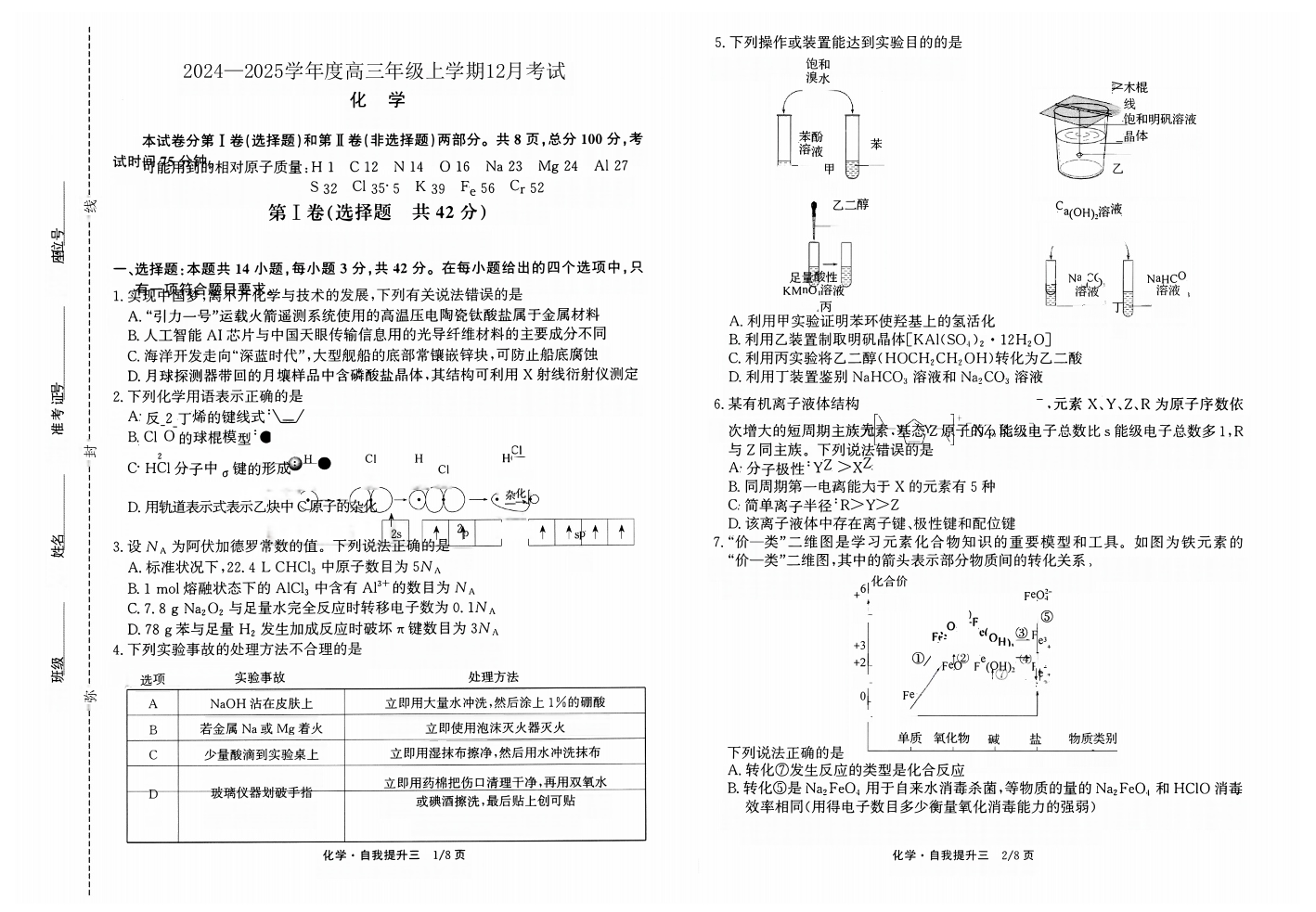 河北省衡水市冀州中学2025届高三上学期12月月考化学