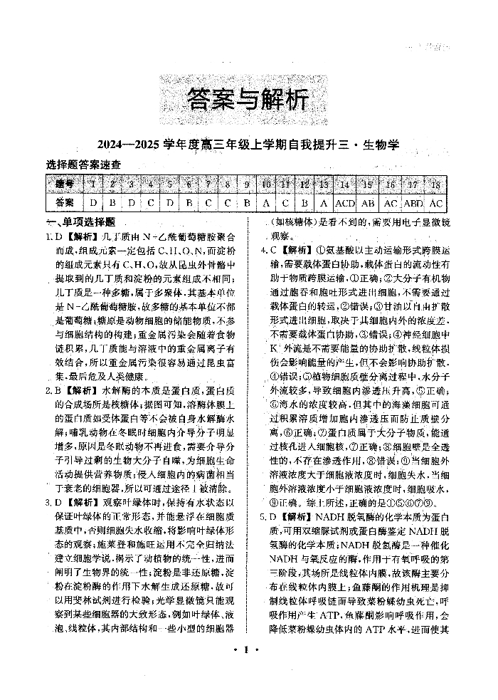 河北省衡水市冀州中学2025届高三上学期12月月考生物答案
