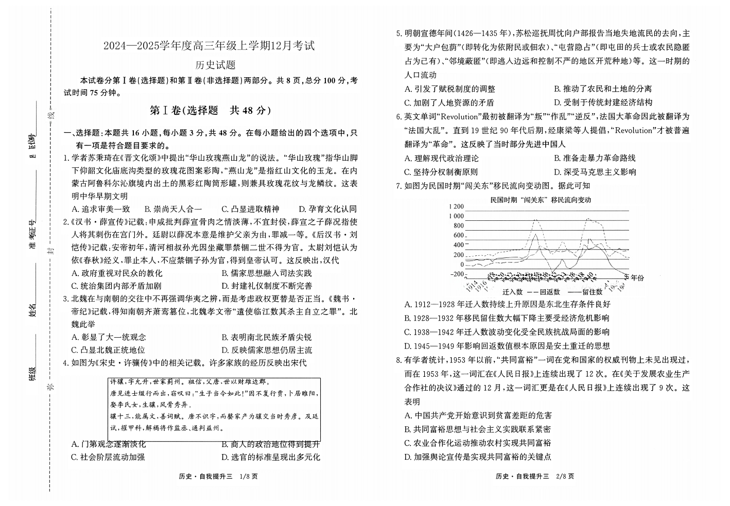 河北省衡水市冀州中学2025届高三上学期12月月考历史