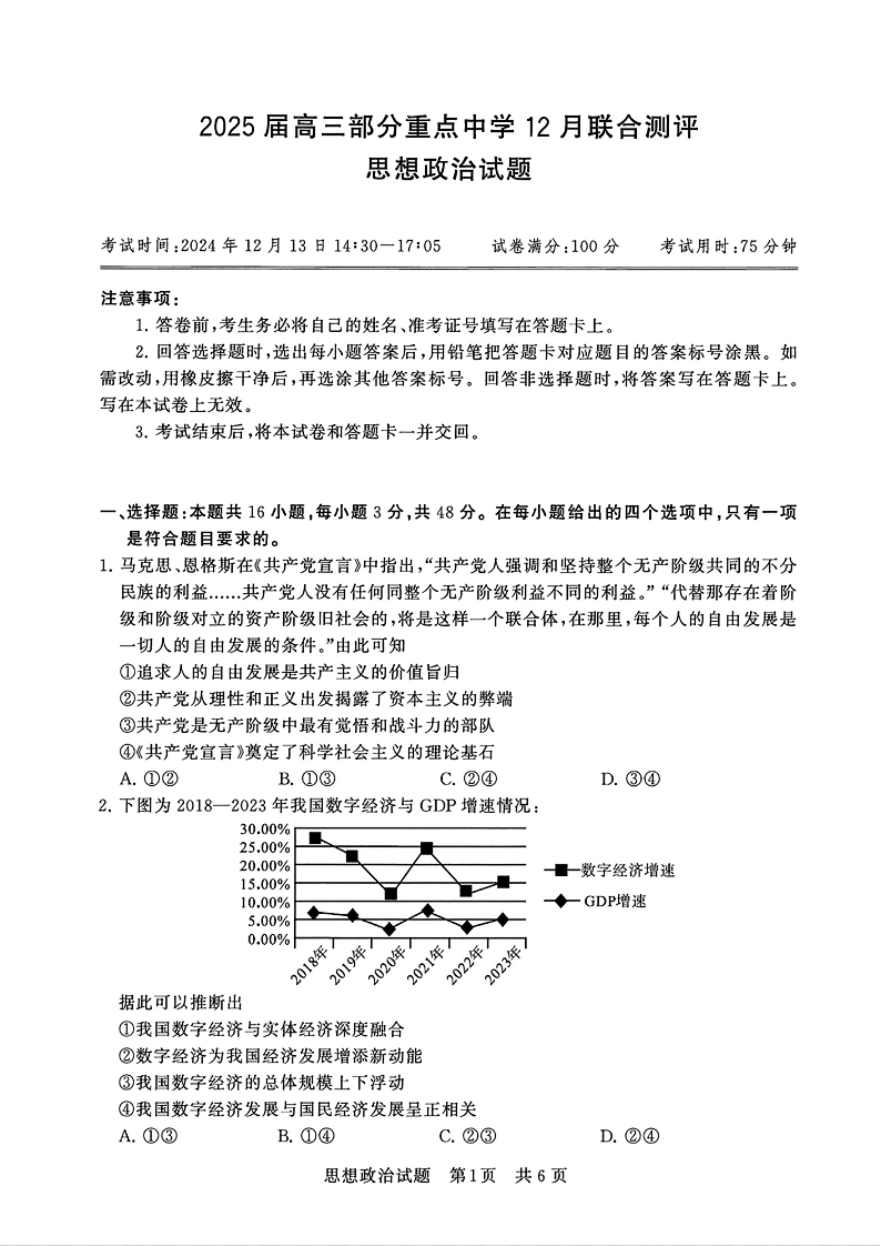 T8八省八校联考2025届高三部分重点中学12月联合测评政治PDF含答案