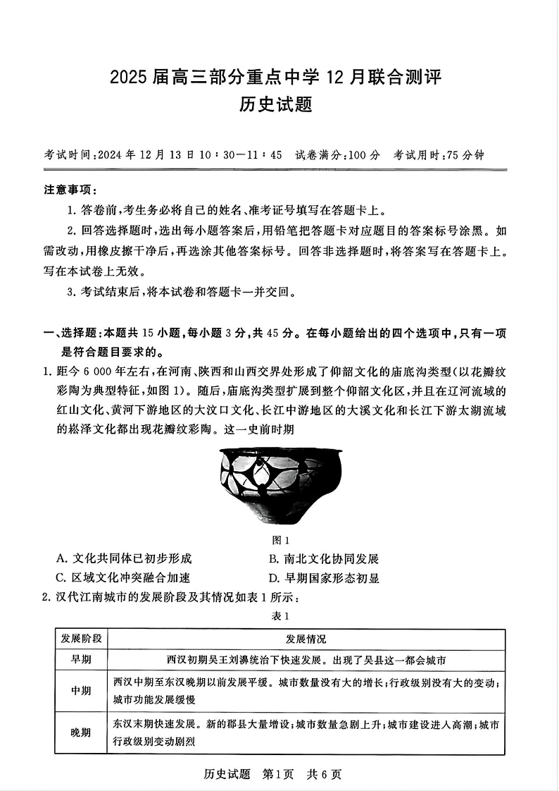 T8八省八校联考2025届高三部分重点中学12月联合测评历史