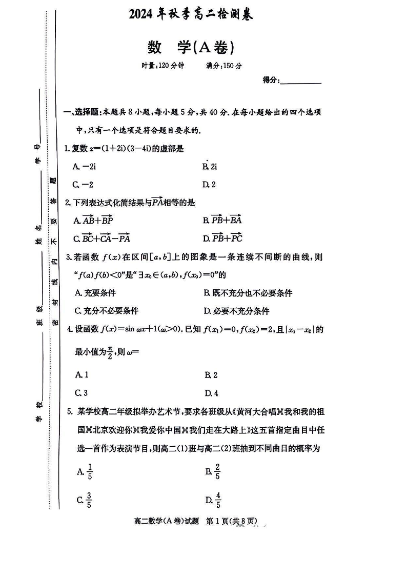 湖南长郡中学等十八校联盟2024年高二12月第三次月考数学A卷PDF版含答案