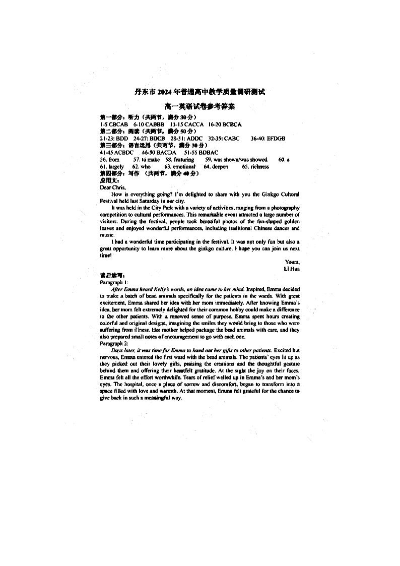 辽宁省丹东市2024-2025学年高一上学期12月教学质量调研测试英语答案