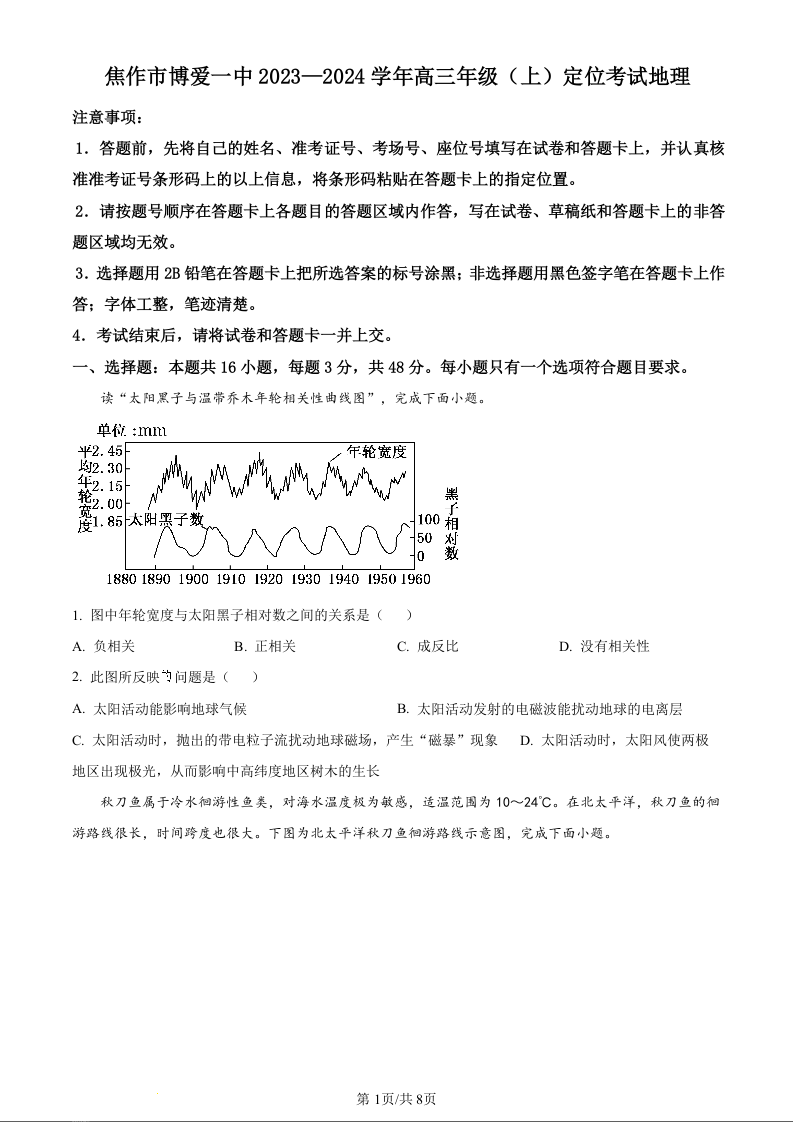 河南省焦作市博爱一中2023.9高三年级开学定位考试地理