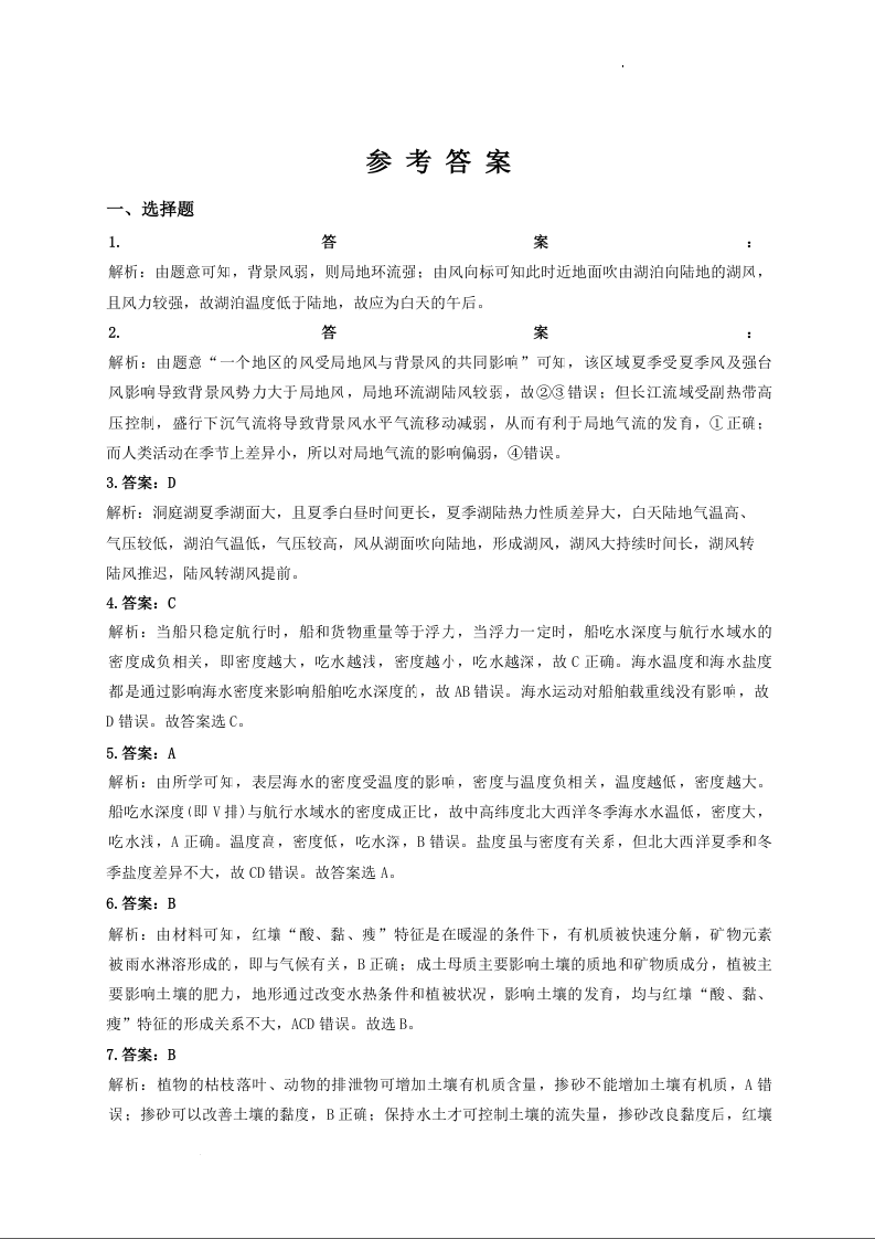 河南省漯河市高级中学2023.9高三年级摸底考试地理答案