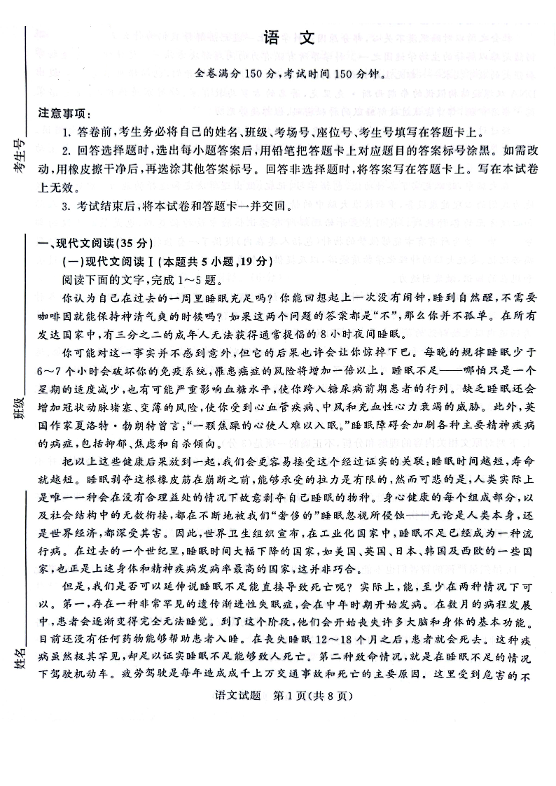 河南省青桐鸣2023.9高三年级月考试题语文+答案
