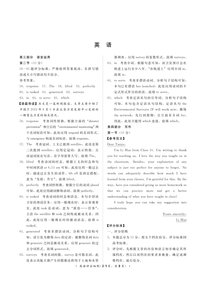 河南省周口市5校2023.9高三年级检测试题英语评分细则