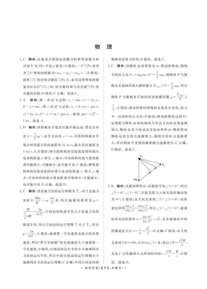河南省周口市5校2023.9高三年级检测试题物理答案