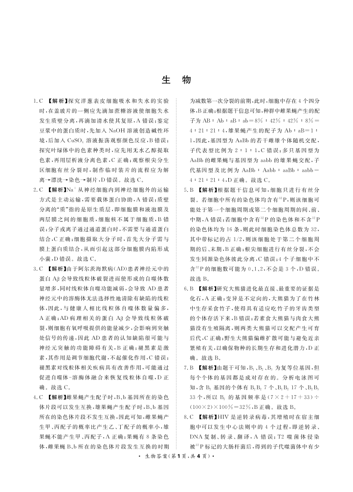 河南省周口市5校2023.9高三年级检测试题生物答案
