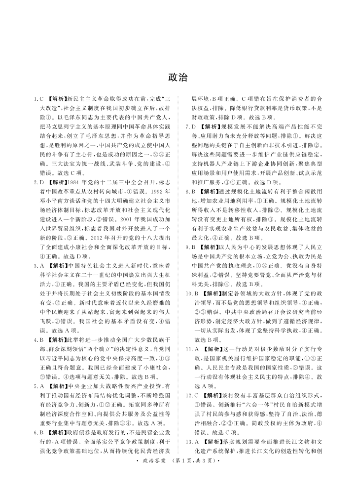 河南省周口市5校2023.9高三年级检测试题政治答案