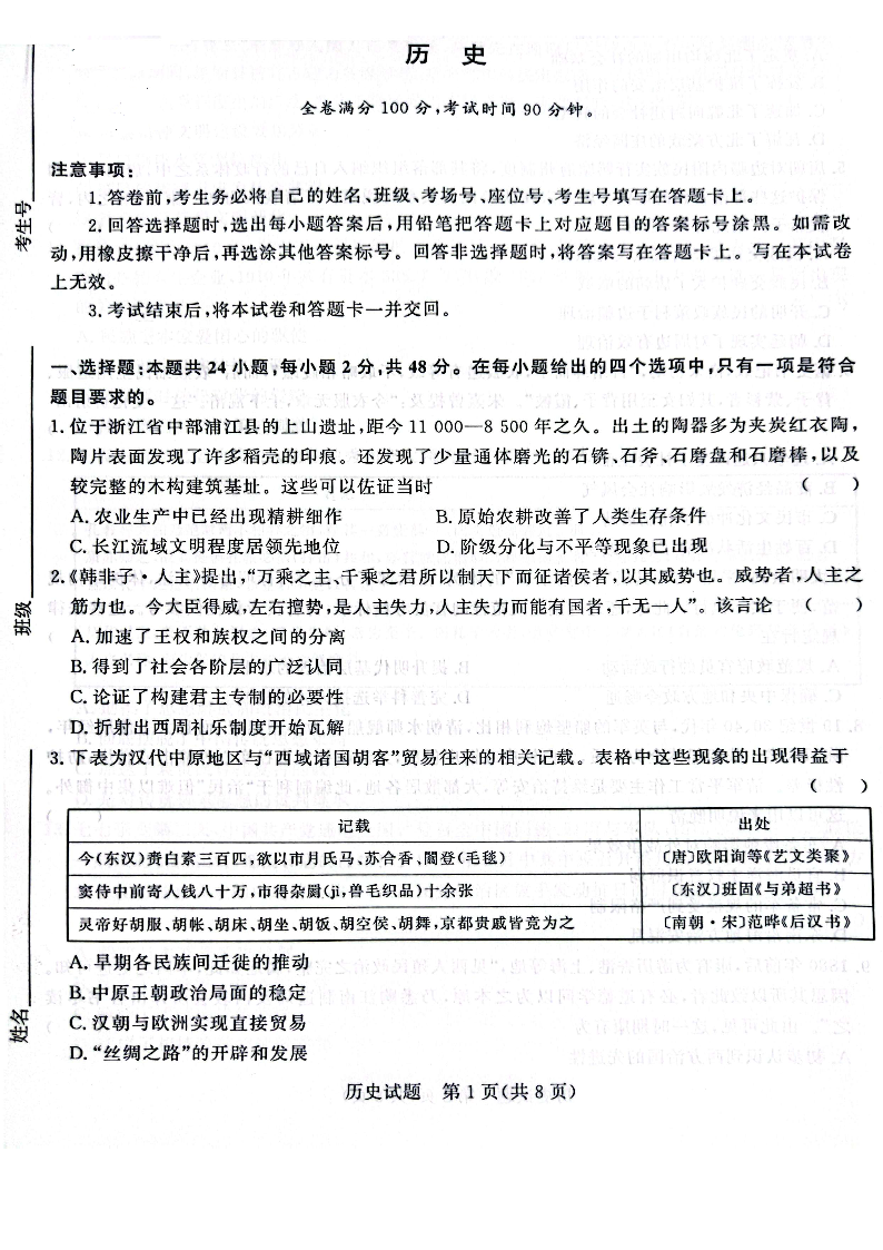 河南省周口市5校2023.9高三年级检测试题历史
