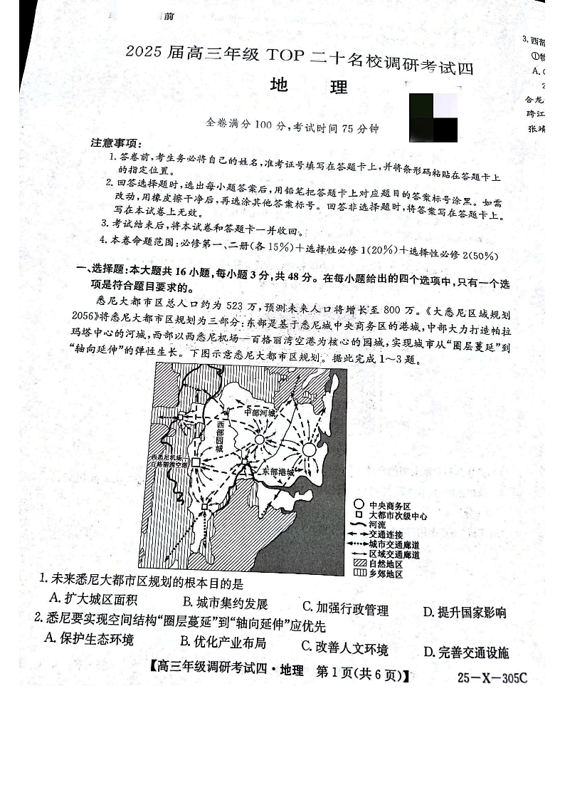 河南省TOP二十名校2025届高三上学期12月调研考试(四)地理