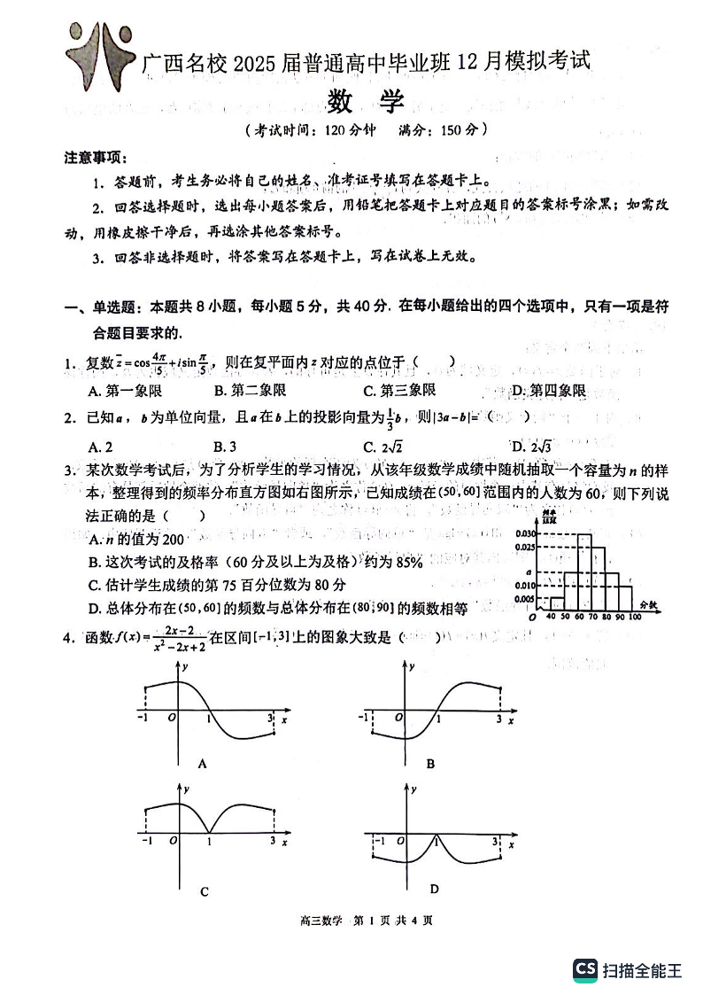 广西省贵港市名校2025届普通高中毕业班12月模拟考试数学