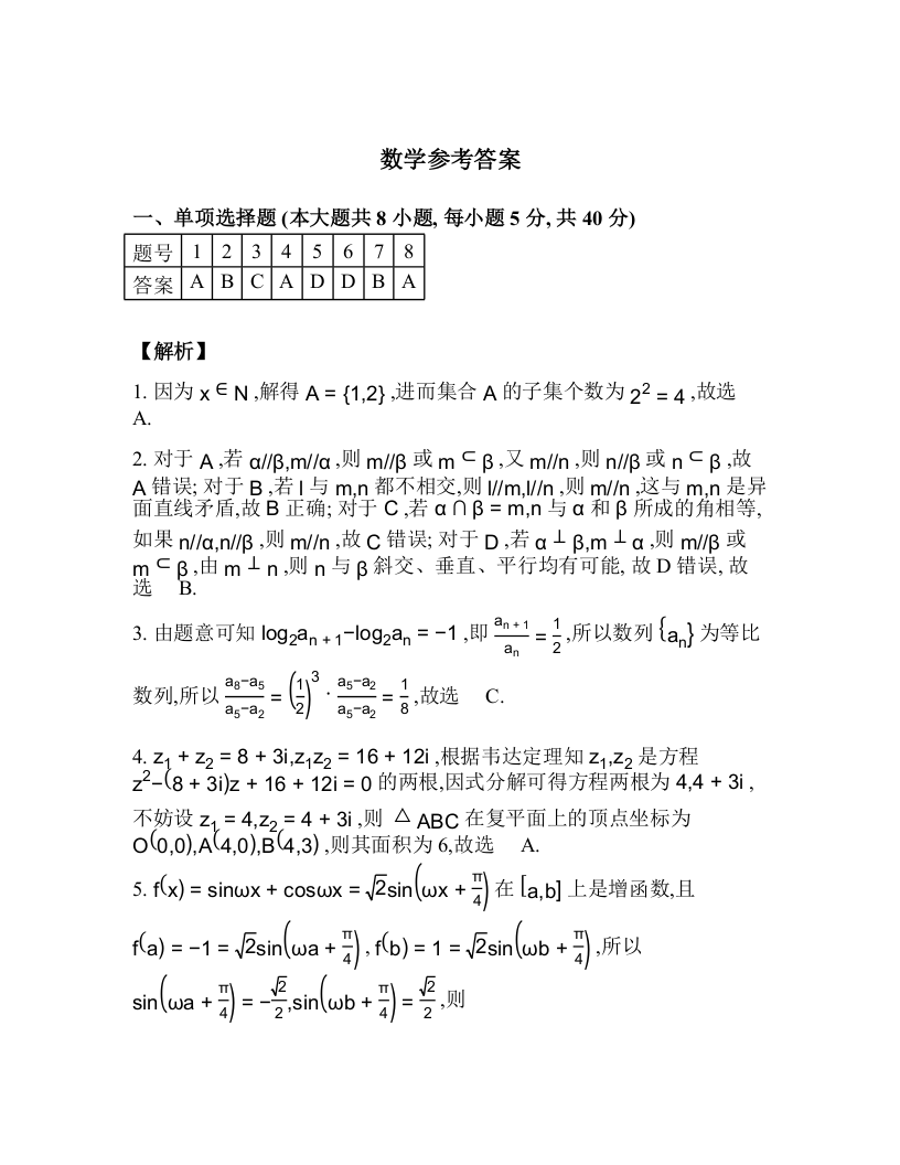 重庆市巴蜀中学2025届高考适应性月考卷(四)数学答案