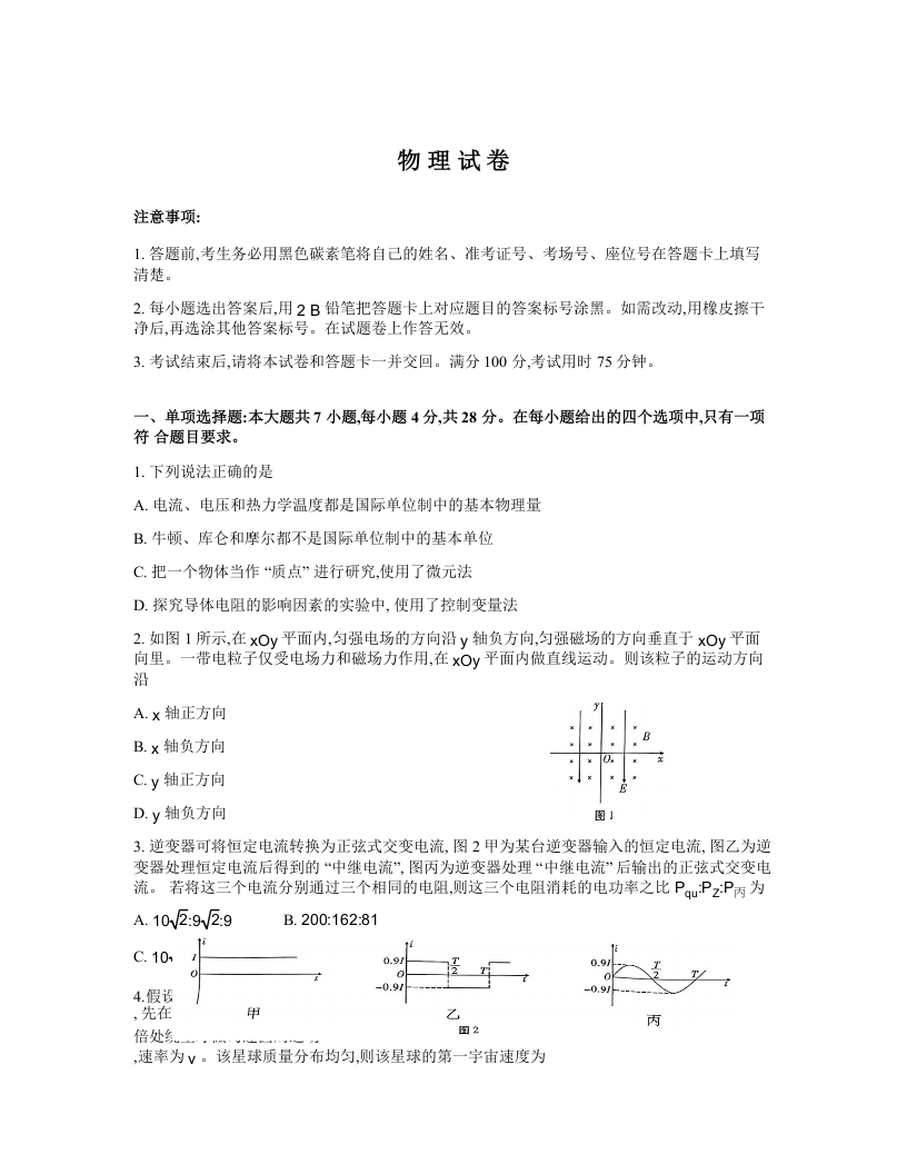 重庆市巴蜀中学2025届高考适应性月考卷(四)物理