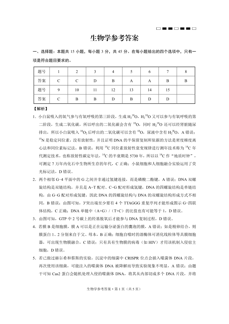 重庆市巴蜀中学2025届高考适应性月考卷(四)生物答案