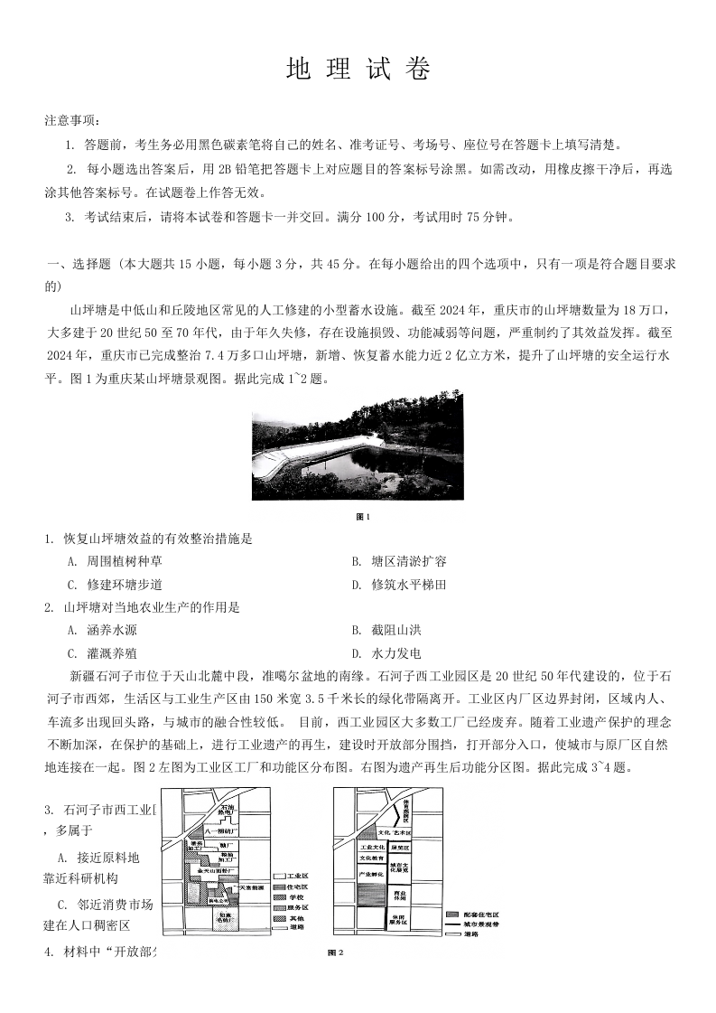 重庆市巴蜀中学2025届高考适应性月考卷(四)地理