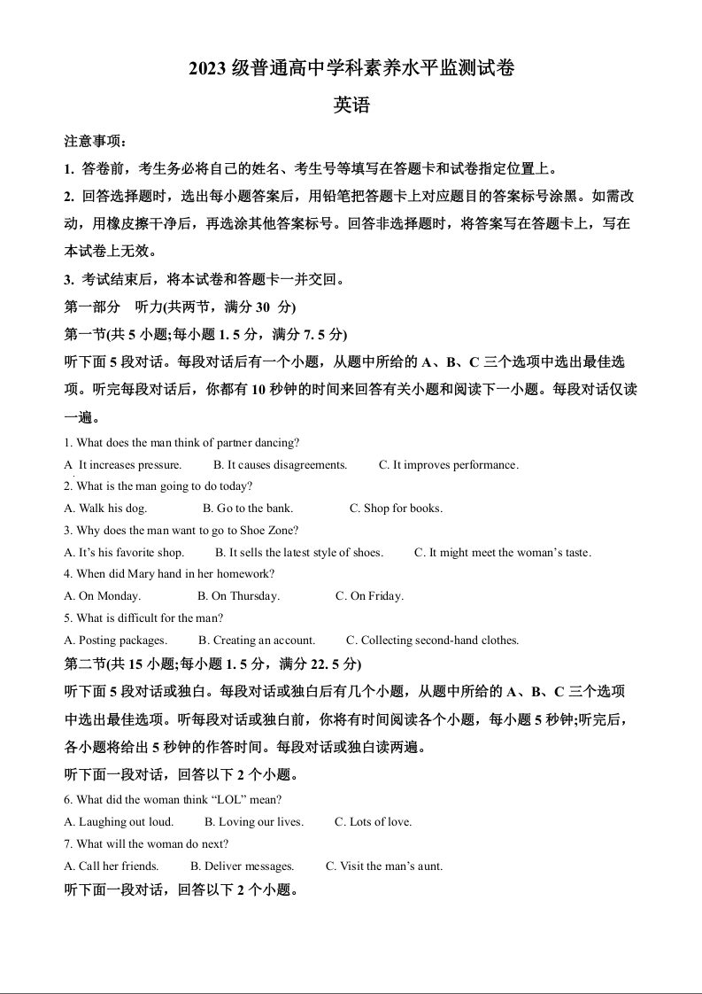 山东省临沂市2024-2025学年上学期高二学科素养水平监测英语(精品解析版)