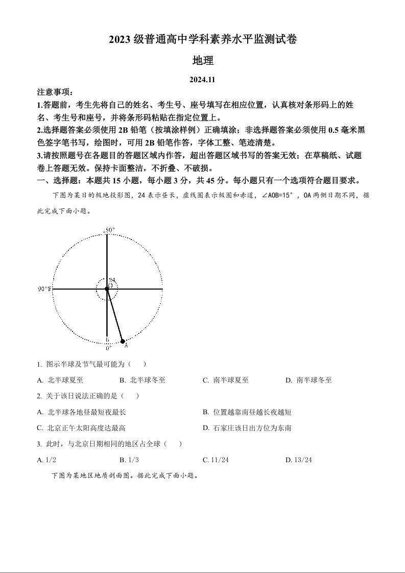 山东省临沂市2024-2025学年上学期高二学科素养水平监测地理(原卷版)