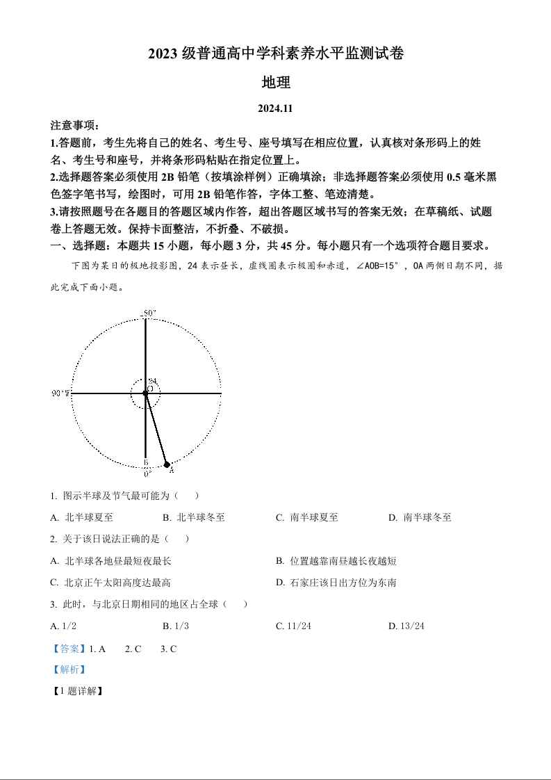 山东省临沂市2024-2025学年上学期高二学科素养水平监测地理(精品解析版)