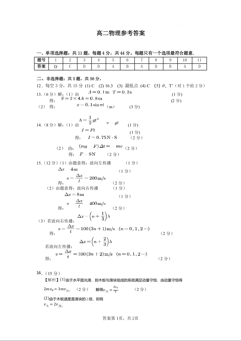 江苏省徐州市2024-2025学年高二上学期期中考试物理答案