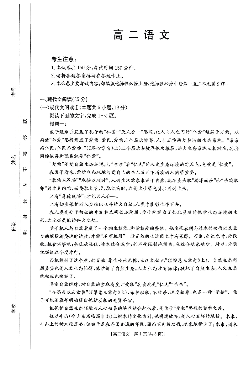 广东省部分名校2024-2025学年高二上学期12月联合检测语文