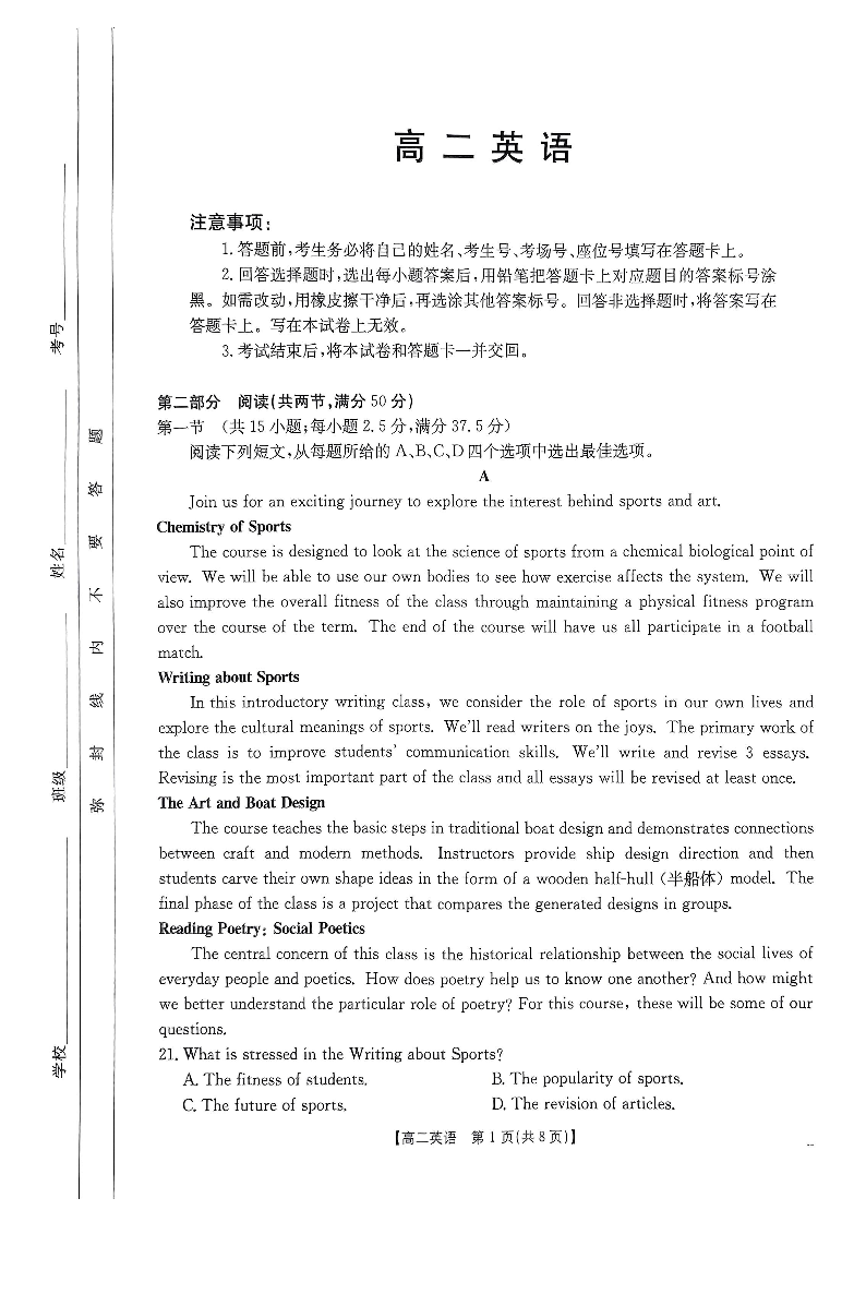 广东省部分名校2024-2025学年高二上学期12月联合检测英语