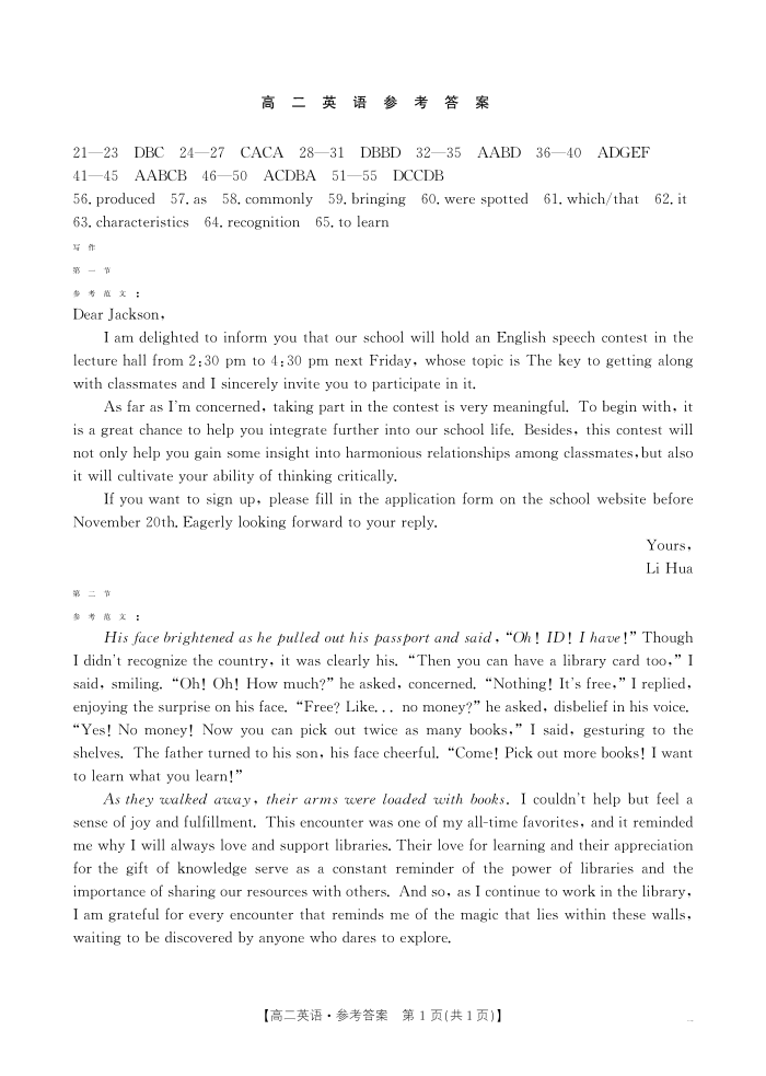 广东省部分名校2024-2025学年高二上学期12月联合检测英语答案