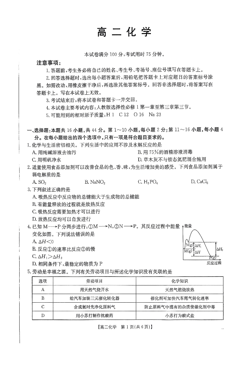广东省部分名校2024-2025学年高二上学期12月联合检测化学