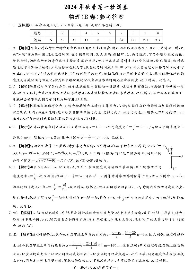湖南省长沙市长郡中学2024-2025学年高一上学期12月月考物理(B)答案