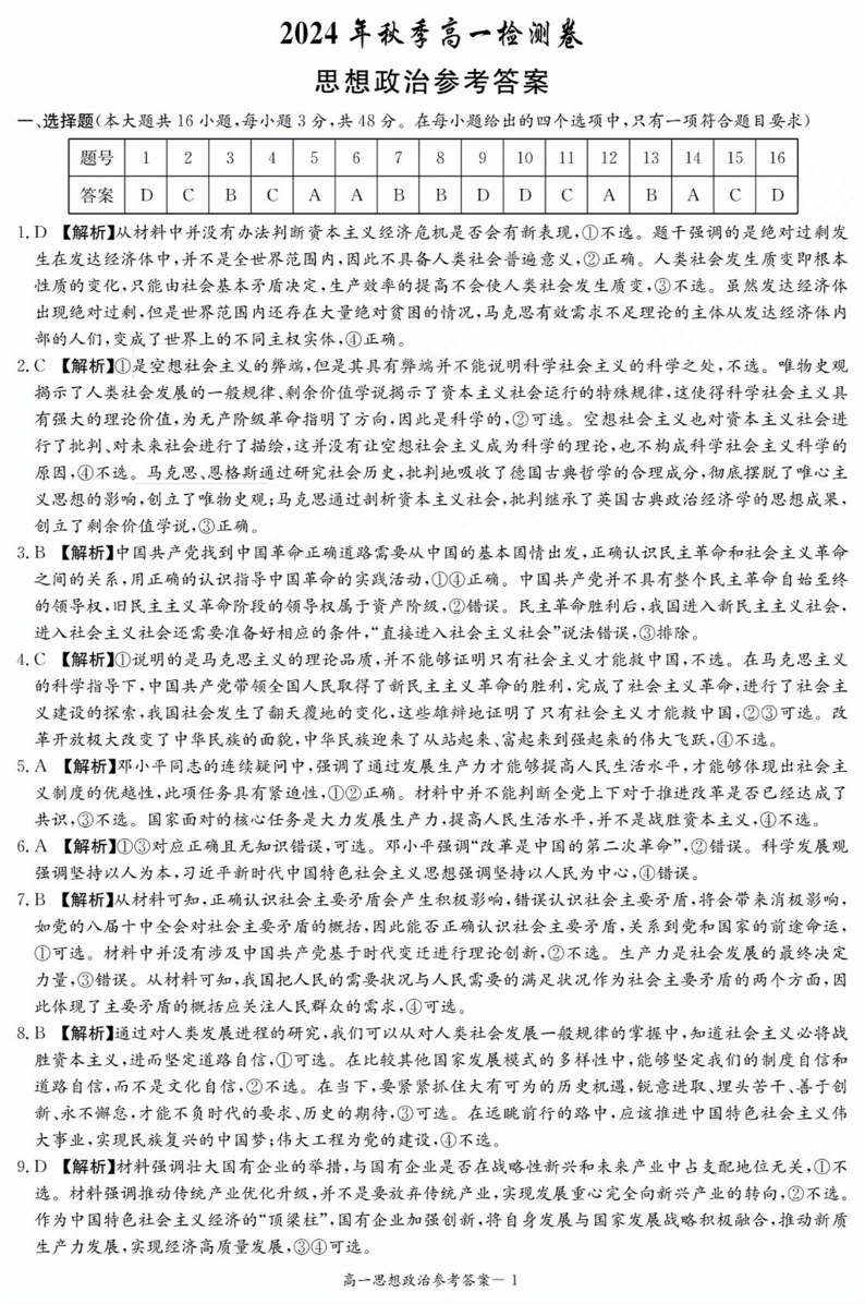 湖南省长沙市长郡中学2024-2025学年高一上学期12月月考政治答案解析