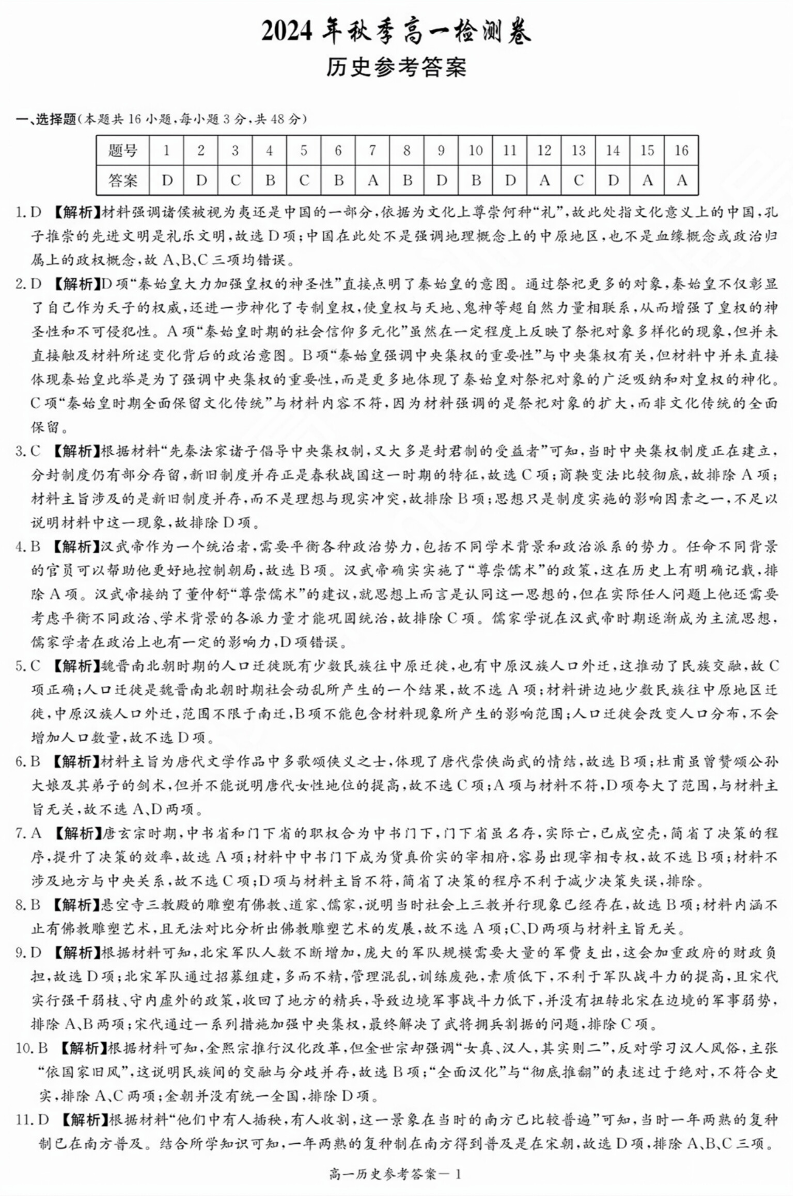 湖南省长沙市长郡中学2024-2025学年高一上学期12月月考历史答案解析