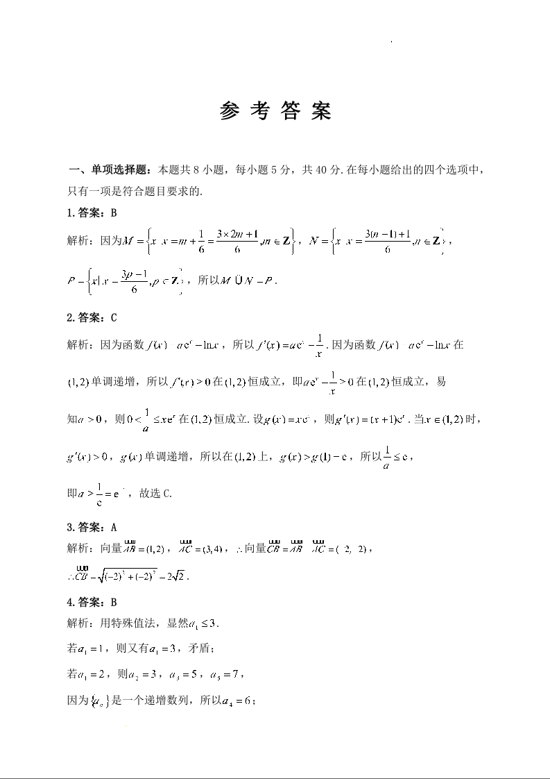河南省许昌高级中学2024.9高三年级开学定位考试数学答案
