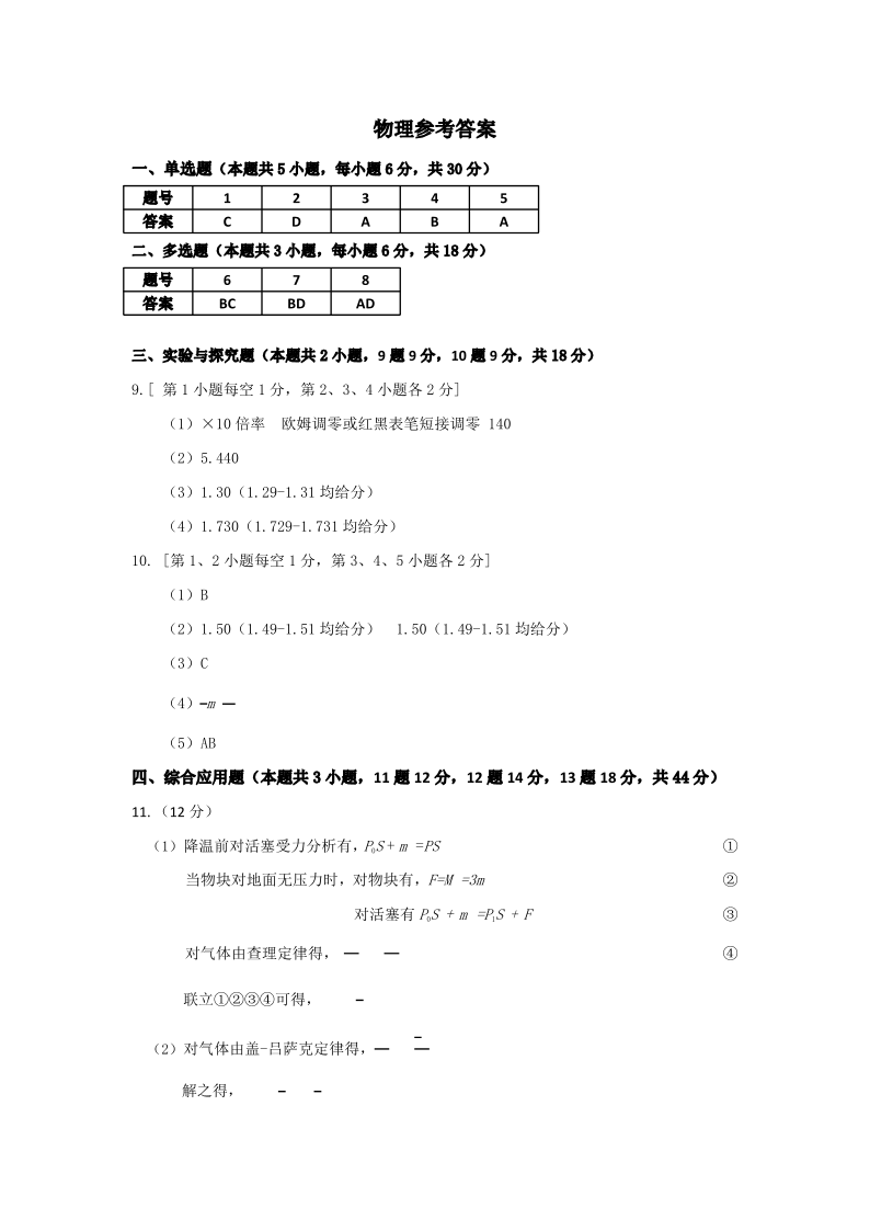 河南省开封市2023.12高三年级第一次模拟考试物理答案