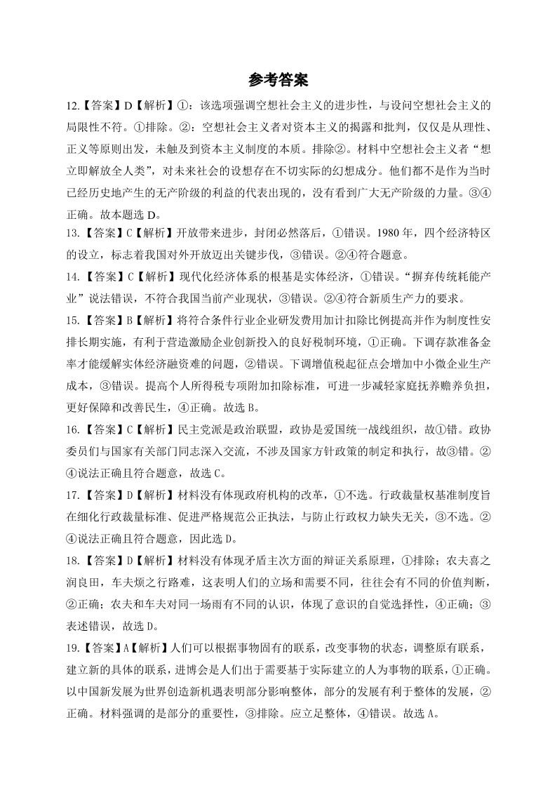 2024届河南省平许济洛四市高三上学期第二次质量检测政治答案