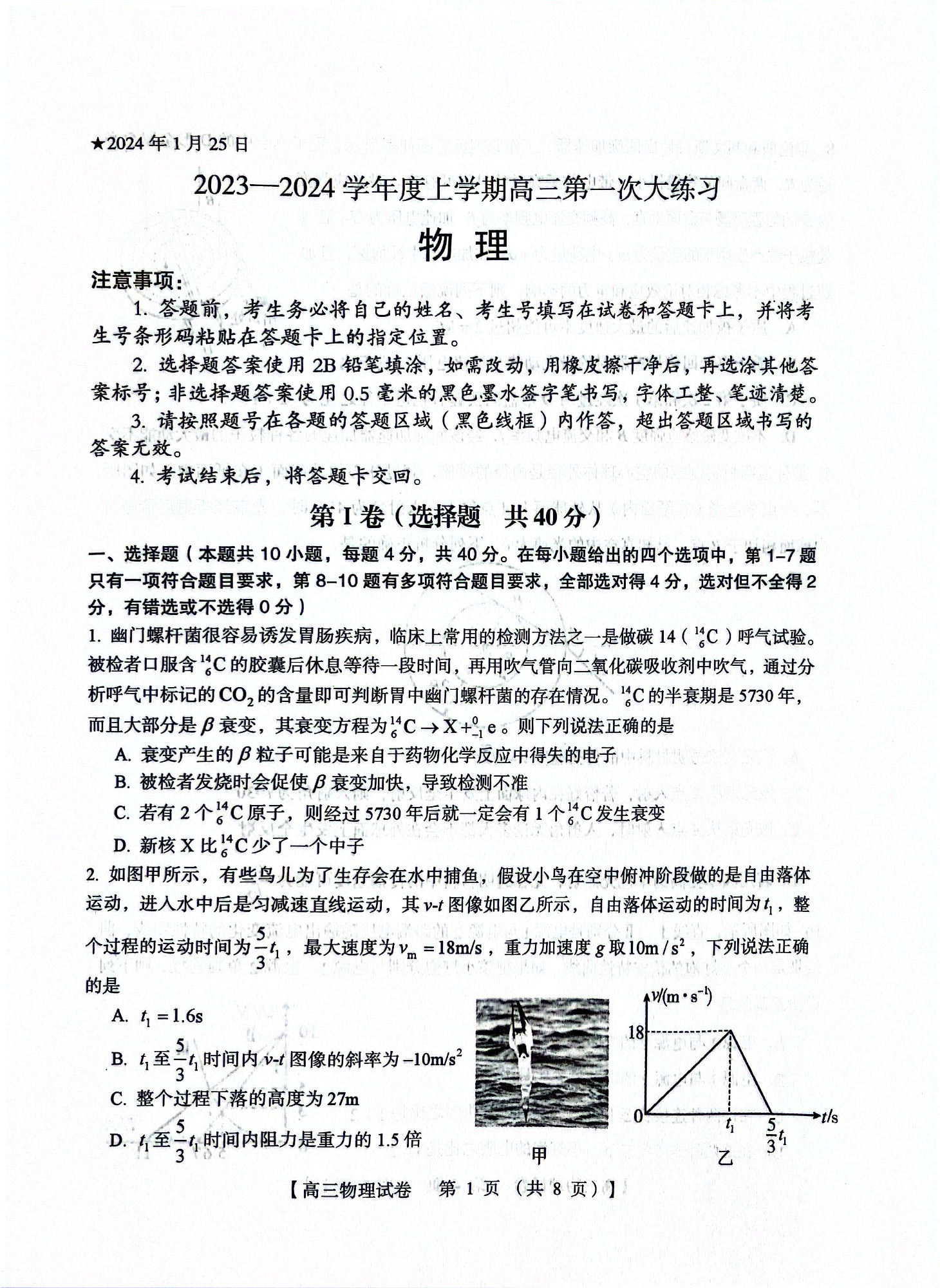 河南省三门峡市2023-2024学年度高三第一次大练习物理