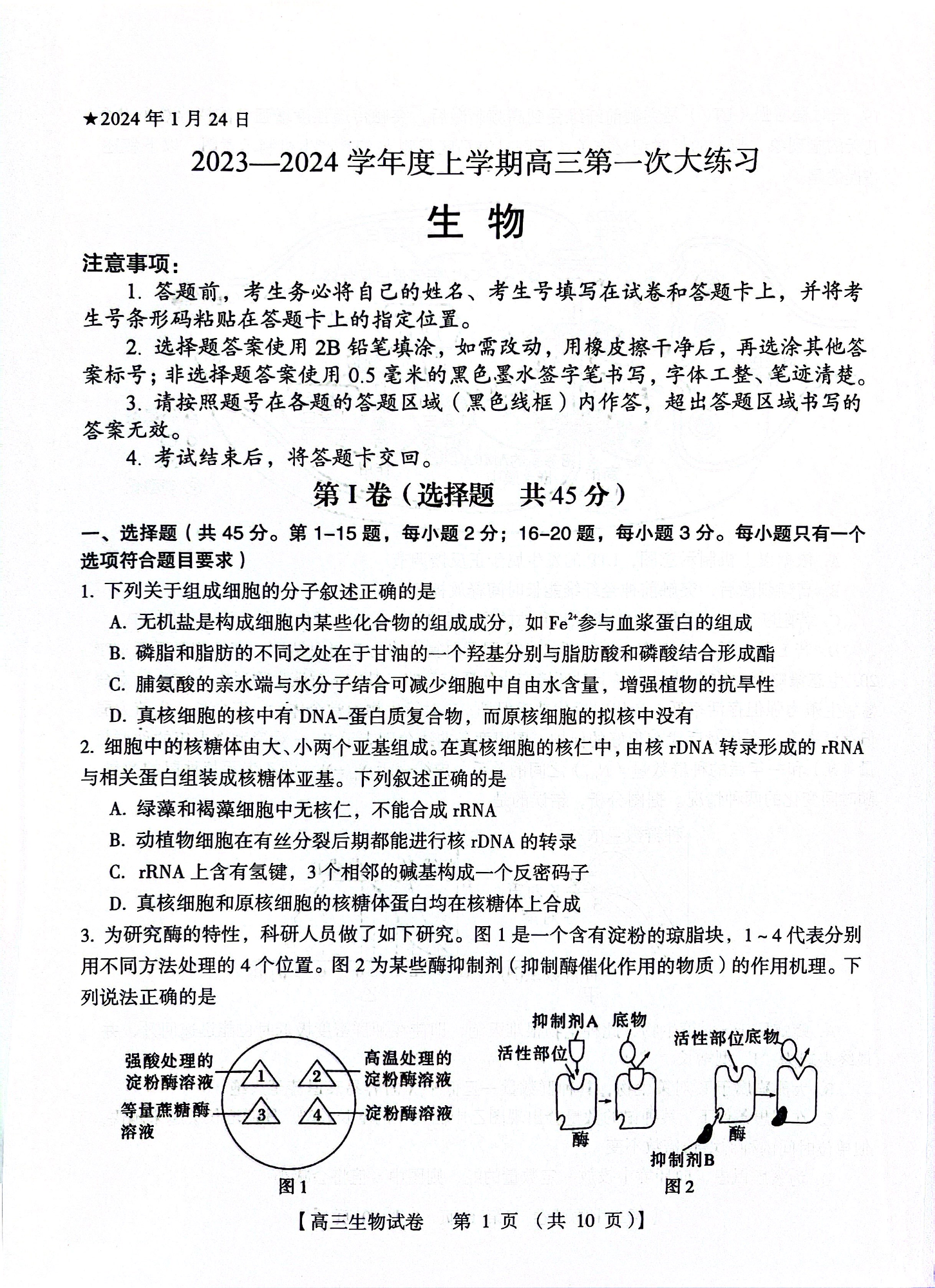 河南省三门峡市2023-2024学年度高三第一次大练习生物