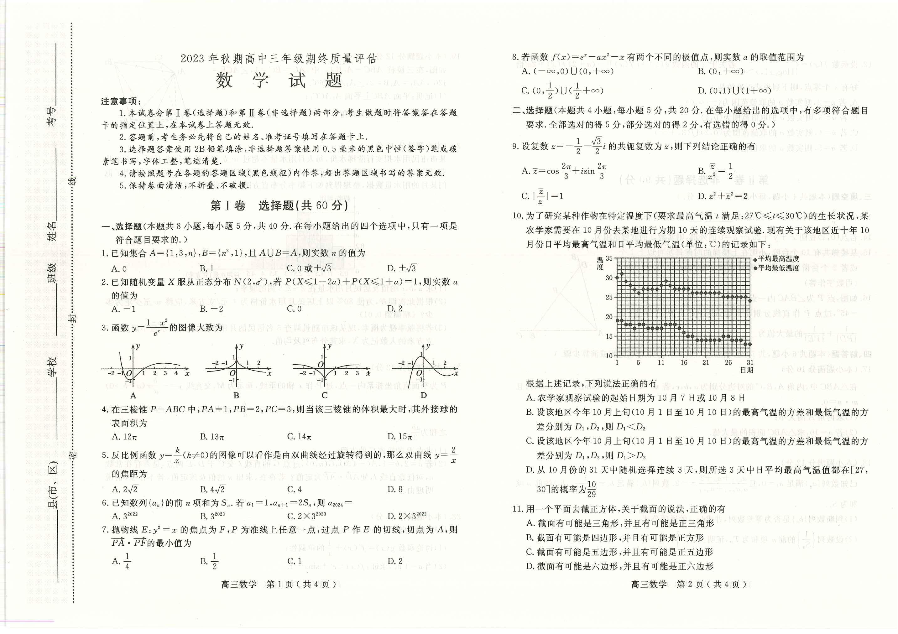 河南省南阳市2024届高三上学期1月期终质量评估数学
