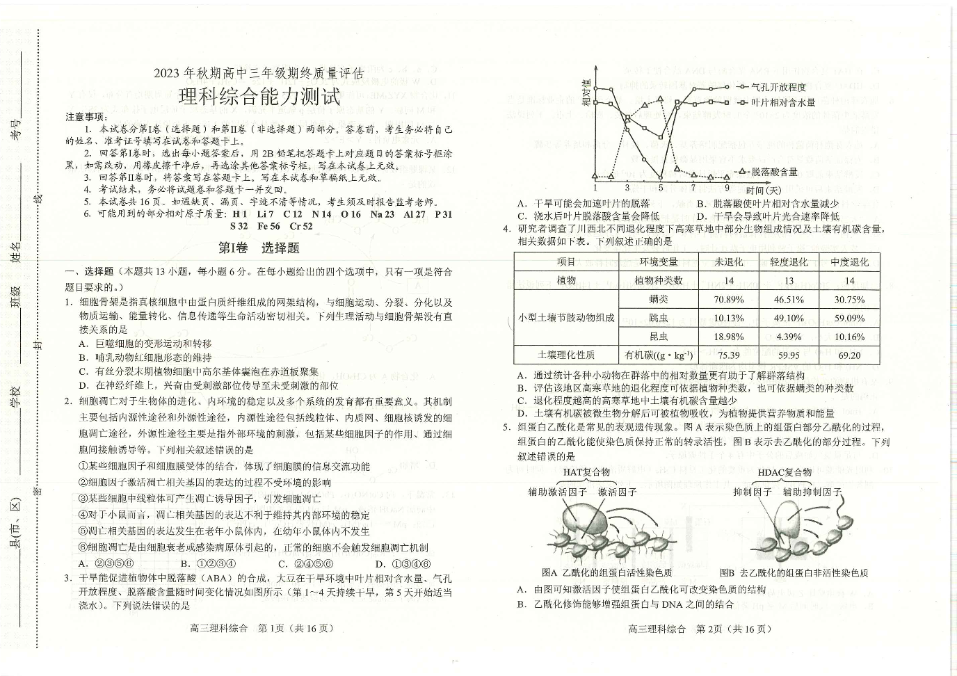 河南省南阳市2024届高三上学期1月期终质量评估理科综合
