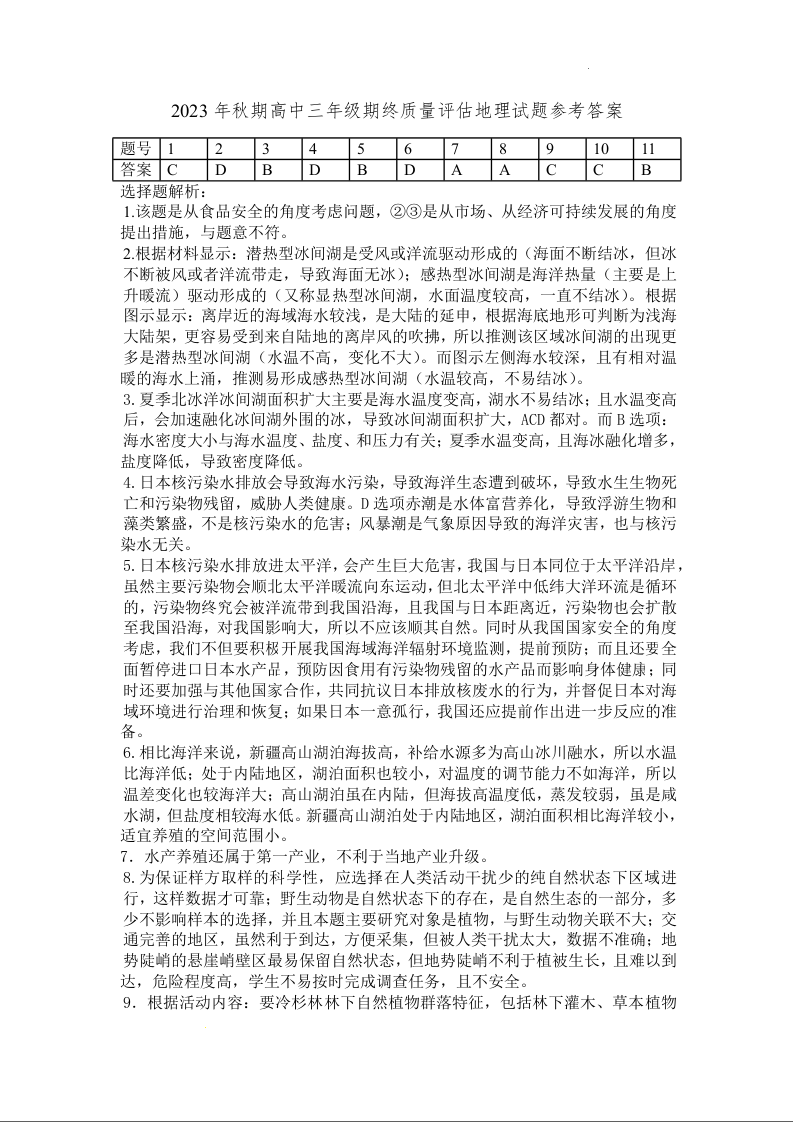 河南省南阳市2024届高三上学期1月期终质量评估地理答案