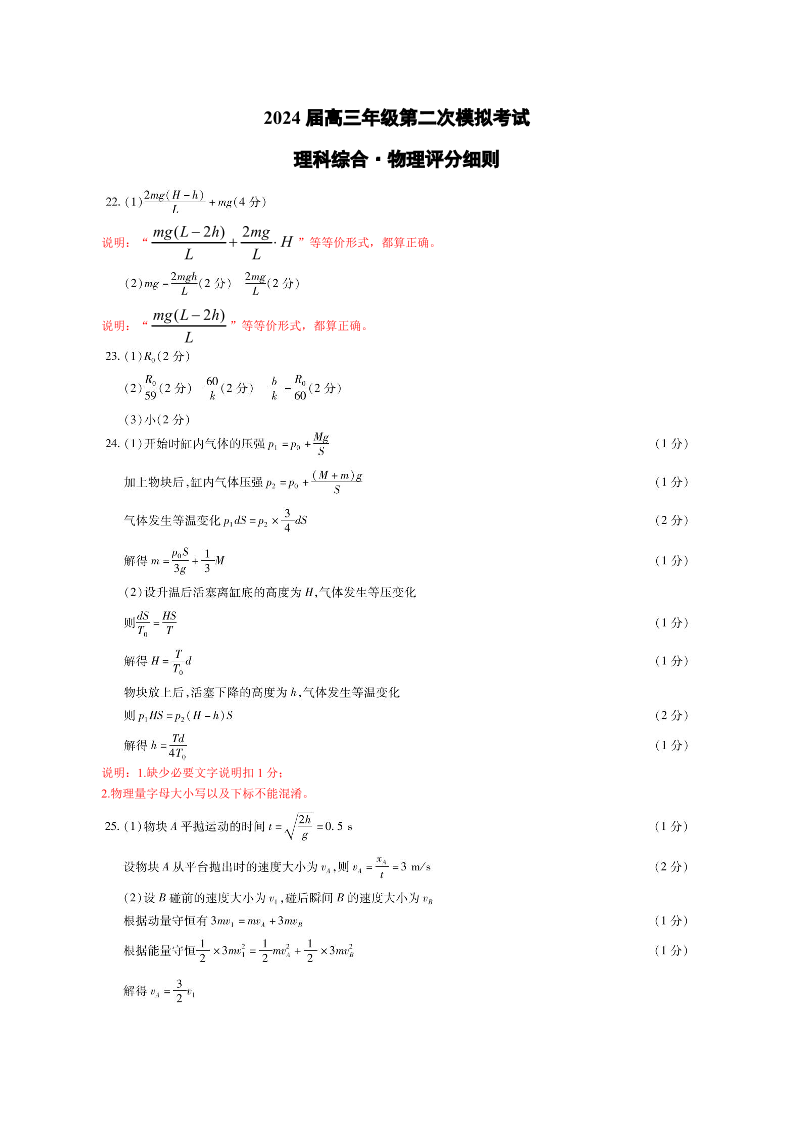 河南省四市2024届高三3月联考(焦作濮阳安阳鹤壁二模)物理评分细则